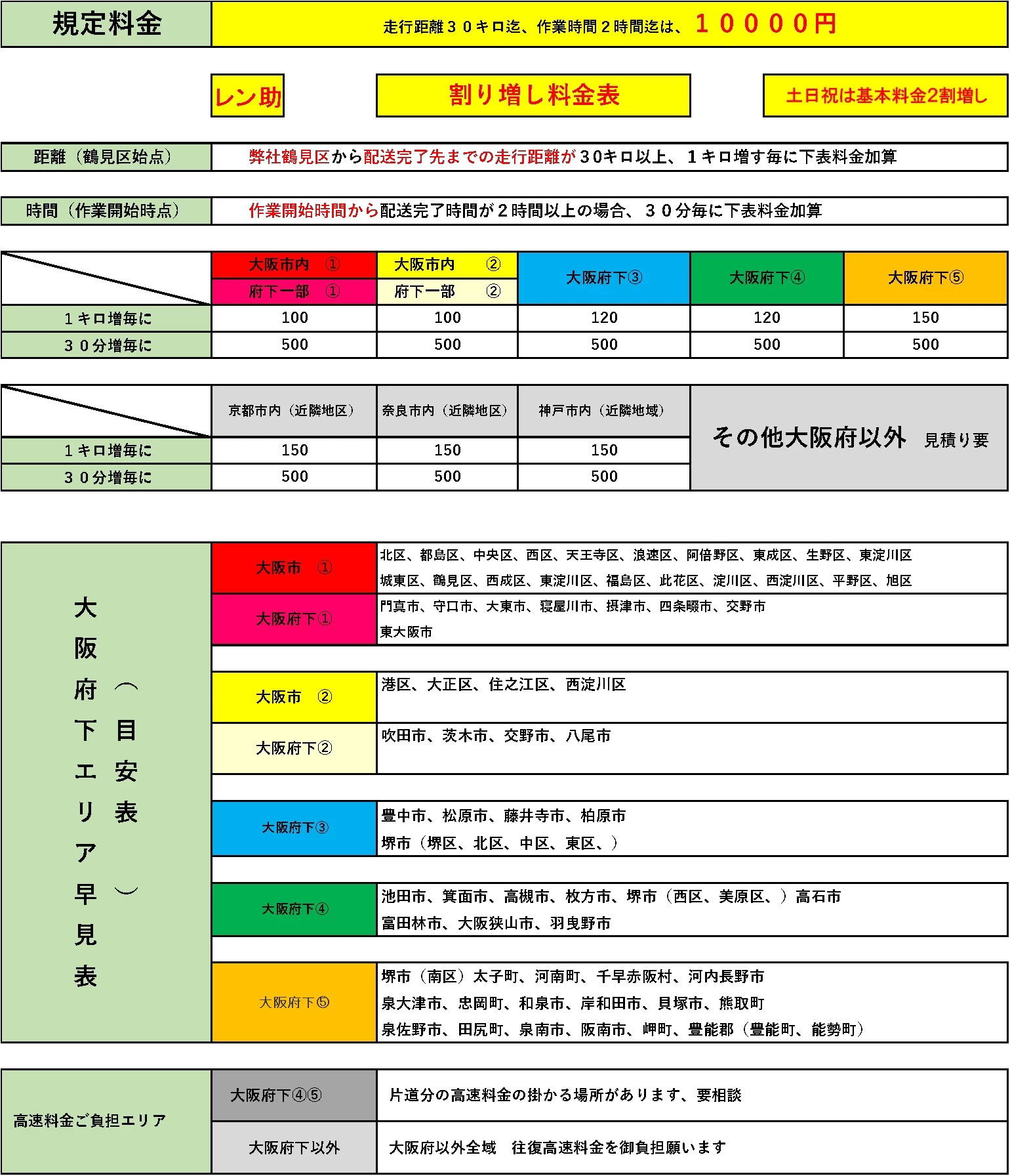 料金表 | 大阪 自力引越 軽トラレンタル 楽電物流 chocoMOVE